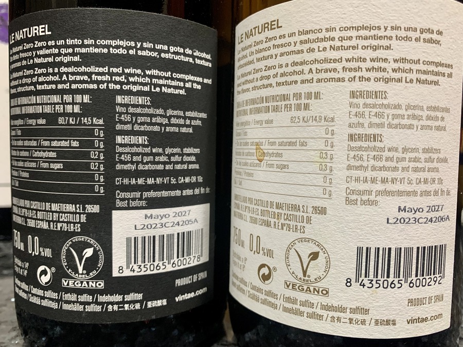 Vintae, the Rioja-born group known for disruptive branding, entered the category in late 2021 with Zero Zero Le Naturel Tinto and Blanco —non-alcoholic counterparts to their low-intervention Le Naturel range. CEO Richi Arambarri highlights the range’s growing significance: the Tinto (Garnacha Tinta) now accounts for a third of the regular volume, and the Blanco (Garnacha Blanca and Viura) for half.