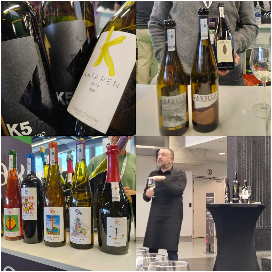 Del salón destacamos también la originalidad de los vinos de Blai & Blai, en especial su Orange (15 €), un vino naranja de la variedad hondarrabi zuri que pasa 15 días con sus pieles aportando una textura extra al conjunto sin perder la frescura habitual de la variedad. Es un estilo muy poco explorado en la comarca, pero esta pequeña bodega ubicada en Oñati, en el interior de Gipuzkoa, lo aplica tanto en este vino como en Sakona 2023, que mezcla uvas de la costa con uvas de Oñati, con más madurez, y se macera con pieles durante cuatro días. Todavía están en una fase inicial y de mejora pero el dinamismo y las ganas de ir más allá son siempre una buena señal.