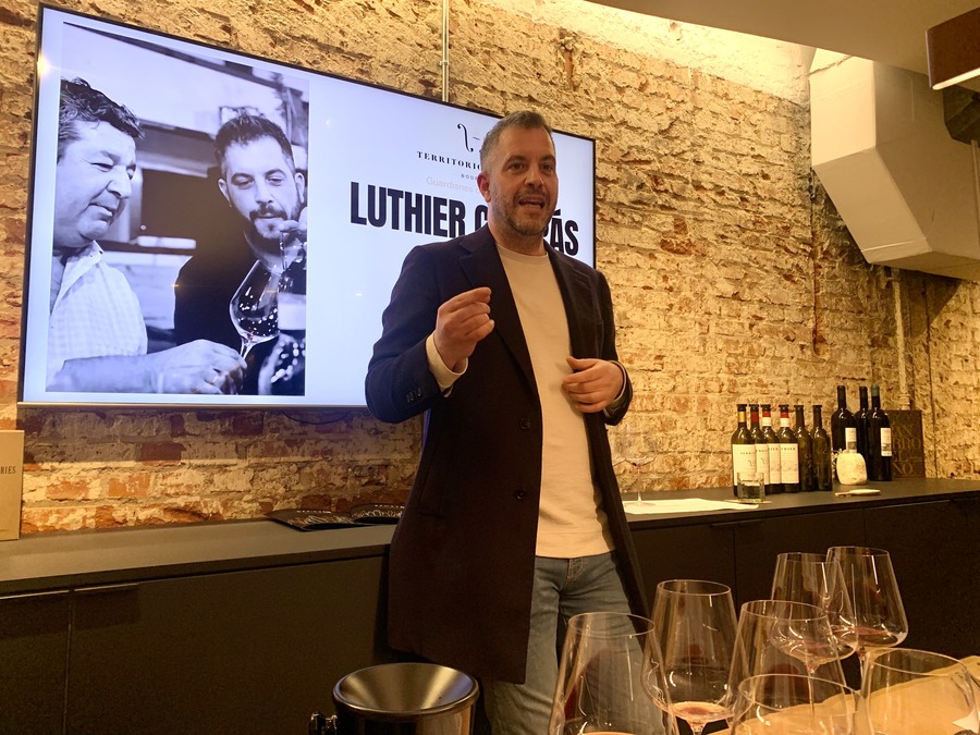El objetivo es doble: mostrar la capacidad de envejecimiento de los vinos y ofrecer una inversión que se revaloriza. “La inmediatez empobrece la calidad de la zona”, apunta Fernando Ortiz. “Si haces lo que te dicta la moda, pierdes parte de tu identidad. Mi modelo de ribera son los vinos de los años 70, 80 y primeros noventa; no los de alta extracción de los 2000”. Habla con conocimiento de causa por el negocio familiar de vinos viejos de la Bodega Don Carlos en Aranda de Duero en el que trabajó antes de centrarse en Territorio Luthier.