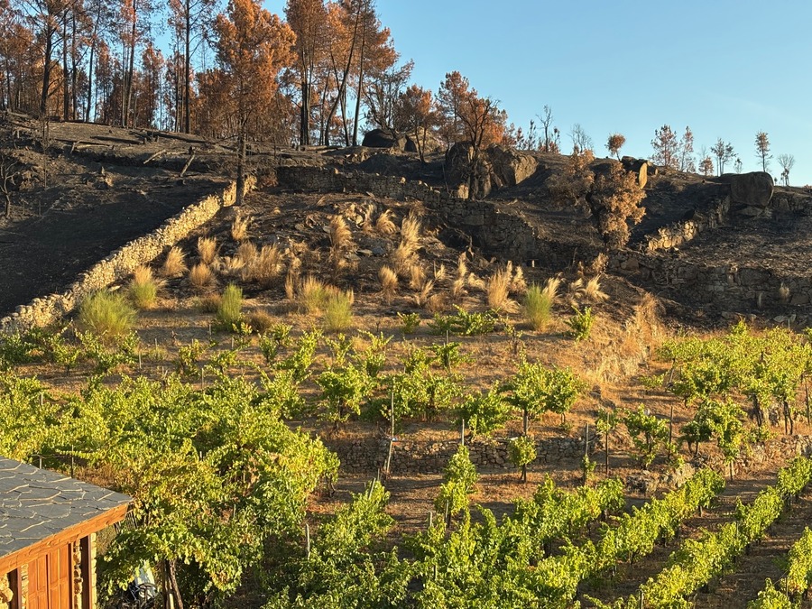 Una visita reciente a la zona nos permitió comprobar la fuerza devastadora de los incendios y catar un buen número de vinos de la región. El viñedo, una vez más mostró su capacidad de supervivencia. Aunque ha habido parcelas afectadas, la viña ha hecho de cortafuegos, protegiendo en muchos casos los núcleos de población, que se vieron rodeados por las llamas. Los terrenos calcinados muestran la huella, a menudo caprichosa, del fuego, que arrasó las zonas más altas de los montes y descendió quemando laderas enteras, pero dejando otras intactas. “El fuego ha alterado la maduración de la añada”, explica el director técnico del Consejo Regulador, Jorge L. Mazairas.