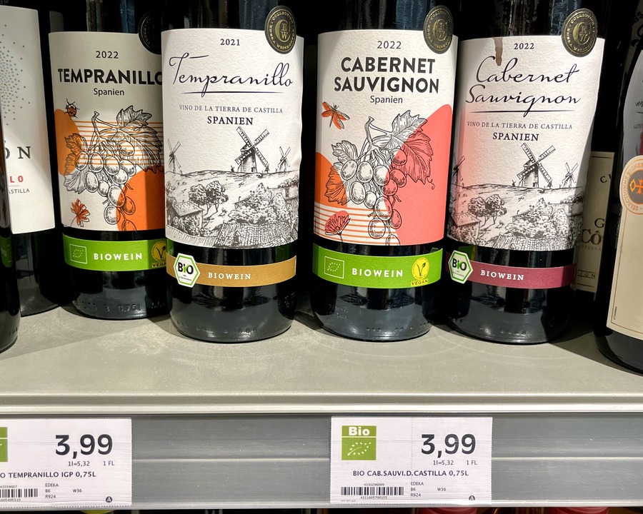A pesar de ser la tercera economía del mundo y una de las 20 primeras en PIB per cápita, el mercado vinícola alemán es especialmente sensible al precio. Las grandes cadenas de alimentación, como Aldi, Lidl y Edeka, concentran dos tercios de las ventas totales de vino en volumen, con un precio medio por botella ligeramente superior a los tres euros. Gran parte del vino embotellado español que se vende en Alemania son monovarietales, liderados por la Tempranillo.