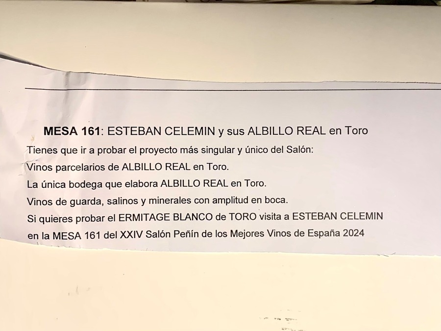 A regular at the UEC (Unión Española de Catadores) tastings, Celemín has many good friends among fellow aficionados. Last week, at Guía Peñín\'s Best Wines show, one of them was handing out the leaflet shown below. Not a bad way to arouse curiosity.