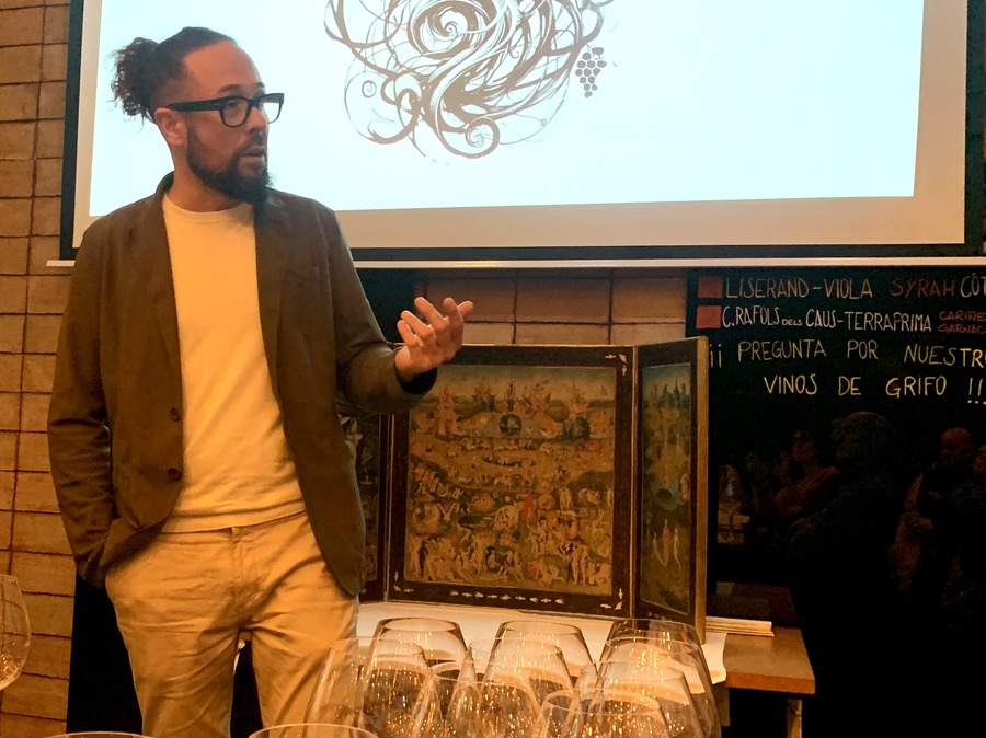 Con la inquietud que le caracteriza, quiso compartir su proceso vital y la evolución estilística realizada en los últimos tiempos en torno a la idea de “la precisión en el caos”, que comparó con la obra del Bosco El jardín de las delicias. “En el vino hay más variables que en el cuadro y tenemos que aprender a manejarnos y a fluir en este caos”, señaló. También reconoció encontrarse en un proceso de ‘desborgoñización’ que está llevando al equipo a “hacer las cosas que queremos hacer y no las que nos dicen que debemos hacer”.