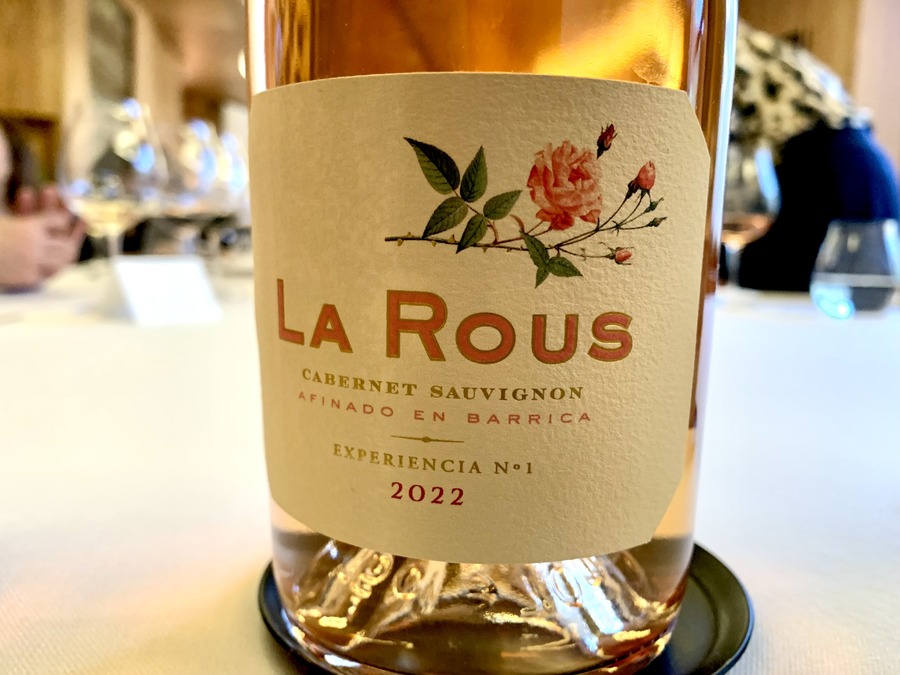 The 9.5-hectare vineyard was initially planted with Tempranillo and international varieties, including Cabernet Sauvignon, Syrah and Touriga Nacional. Following the arrival of viticultural consultant Juan Antonio Leza, the Tempranillo vines were replaced with Graciano and white varieties such as Chardonnay, Garnacha Blanca and soon, Albillo Mayor. The first vintage in 2022 yielded a red blend and a Cabernet Sauvignon rosé. Fermented and aged in barrel (see photo above), the wine has evolved well in the bottle. The 2023 La Rous is a rich, full-bodied rosé that can play the role of a medium-bodied red wine in warmer months. Cabernet's strong character is tempered by the choice of making a rosé, the estate's elevation over 700m that favours slow ripening, and the impact of shallow, acidic soils that prevent a soft, easy expression of the variety and provide plenty of sapid notes on the finish. Jean Marc Sauboua (Altos de Rioja) is the winemaking consultant.