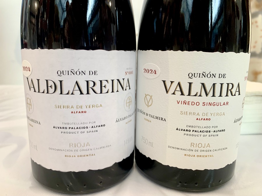 Para Álvaro Palacios, 2024 es una añada caliente y de sequía que, no obstante, se vendimió en fechas habituales y que gracias al agua que cayó en septiembre, mantuvo un buen equilibrio entre azúcar y acidez. A diferencia de 2023, que fue bastante más cálida, sus viñedos del monte Yerga, en Rioja Oriental, se beneficiaron de diferencias térmicas entre el día y la noche en la fase final de maduración. Encontramos mucha más definición y expresión (fragante, especiado, largo) en el Valdelarreina 2024 (117,45 €) frente a su añada inaugural 2023. Quiñón de Valmira (350,9 €) se mostró magnífico, más frutal que especiado y casi explosivo en boca. Palacios está buscando más concentración retrasando la poda verde y, en esta añada en particular, el calor y un cuajado irregular han contribuido a incrementar esta sensación.