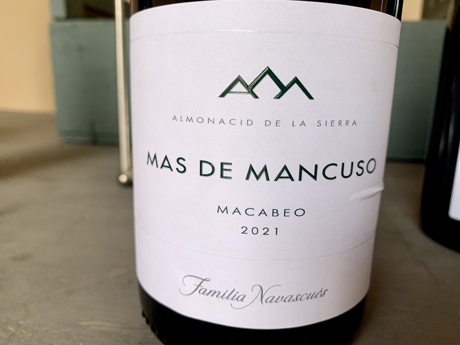 No pudimos probar la cariñena por encontrarse agotada, pero sí el interesante blanco de macabeo también de la cosecha 2021 que Navascués fermenta y cría en dos barricas de 500 litros y una de 300 litros. Procede de un viña más elevada que tampoco alcanza la hectárea de extensión sobre suelos de pizarra. El vino tiene un claro perfil mediterráneo con fruta madura (membrillo) y leves notas melosas. Las hierbas de monte juegan un papel importante. Un blanco con buena acidez, madera discreta y bien elaborado. Sin estridencias, pero muy interesante, puede ser muy versátil en la mesa.