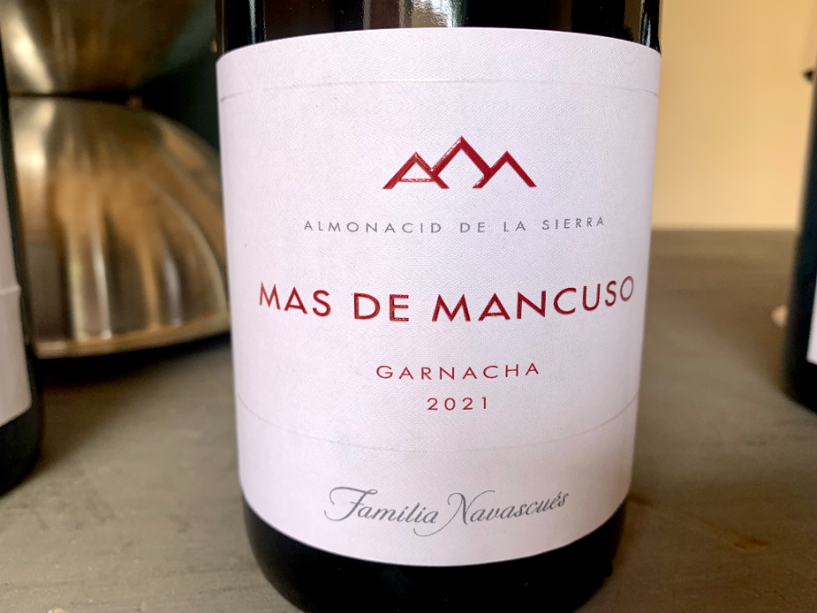 La garnacha tinta del actual Mas de Mancuso 2021 procede de una parcela de algo menos de una hectárea, una viña residual de garnacha en un paraje colonizado por almendros. Jorge se refiere a ella como la viña de Santiago, en honor a su antiguo propietario. No es la parcela más elevada del proyecto, pero su orientación norte y cercanía a la sierra se traduce en una menor insolación en las últimas horas del día y, de hecho, es la última que se vendimia. Fermentado en un 100% con raspón, es su tinto más fresco y abierto de color, y también el más sutil, con toques florales y de pimienta rosa y blanca. Sin huir de una buena maduración, consigue un paladar elegante y aéreo con una profunda dimensión aromática (romero, tomillo) y potencial de seguir creciendo en botella.