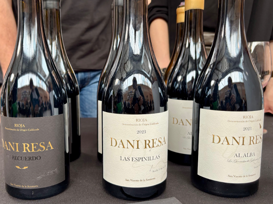 Con apenas su segunda añada en el mercado, los vinos de Dani Resa ya han llamado la atención de Vila Viniteca. Este viticultor de San Vicente de la Sonsierra, que vende uvas a Vega Sicilia o Artuke, ha arrancado con tres etiquetas de producciones limitadísimas, pero que muestran una búsqueda clara hacia un estilo fragante, de equilibrio y con buena definición frutal. El vino más asequible (18 €) es Tu Recuerdo. Del 2024 que llevó al salón solo hizo 600 botellas, pero espera superar las 2.000 en 2025. Con 85% tempranillo, 10% garnacha y 5% viura, es una mezcla de parcelas de zonas altas que muestra ya precisión y cierto refinamiento. Las Espinillas 2023 es un tempranillo sabroso con fruta muy limpia de la zona baja del pueblo, mientras que Al Alba 2023 (solo hay 350 botellas) es una garnacha de la zona media, muy fragante en nariz, pero con cierta concentración en boca a la que será interesante seguir la pista en la botella.