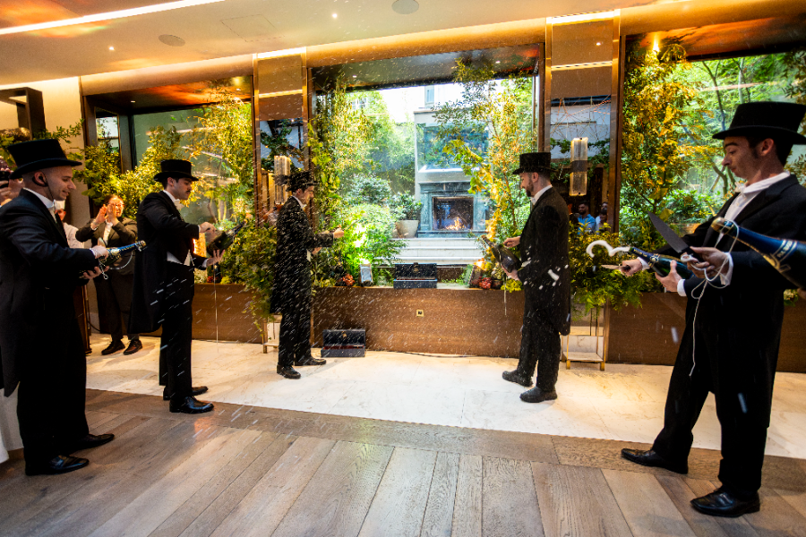 Con diferentes estaciones de comida y bebida en distintos puntos de la planta baja del restaurante, todo invitaba a moverse libremente. Gracias al patrocinio de la importadora Alma Vinos Únicos, que este año ha cumplido su 25 aniversario, se pudo catar una buena selección de blancos y tintos de Borgoña. Como distribuidor exclusivo de Pol Roger en España, Alma se encargó también de que el inicio de fiesta fuera inolvidable. El equipo de sumilleres de Saddle, ataviados con frac y sombrero de copa, descorcharon con sable seis mágnums de la cuvée Winston Churchill. Alma también aportó los vinos que recibieron los ganadores del concurso de cata celebrado unas horas antes.