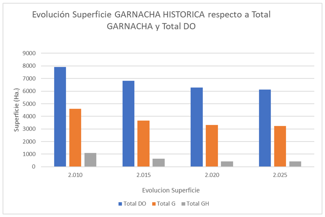 Between 2010 and 2025, the area under vine in DO Campo de Borja shrank by 22%, but the decline of its flagship variety has been even more alarming. Garnacha plantings fell by 30%, while old vines suffered dramatic losses of 60%. In the space of 15 years, the number of Garnacha vines over 35 years old has plummeted from 1,000 to 425 hectares.