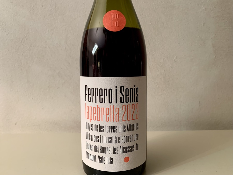 Lo que llega ahora, sin embargo, es una historia bien diferente porque se sirve de nuevos códigos y variedades. Ferrero i Senís La Pebrella 2023 está elaborado con castas más ancestrales si cabe: la arcos, recuperada hace unos años por Fil.loxera y Cía., bodega del municipio cercano de Fontanars, y la también tinta forcallà. Ambas son castas de maduración tardía que se abandonaron tras la filoxera. Se trabaja con dos parcelas de base calcárea. Las uvas fermentan con racimo entero en los viejos lagares de piedra de la bodega vieja y, al igual que hacen con sus mandós, crían el vino en tinaja de barro completando con damajuana de cristal.